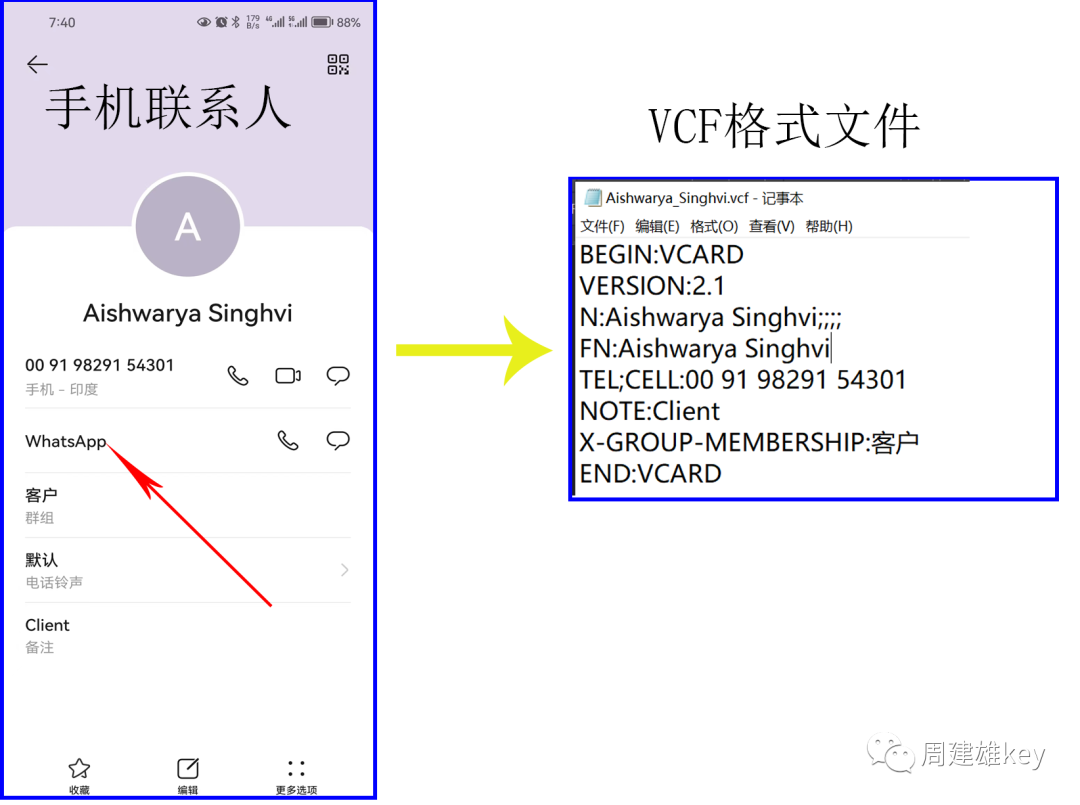 从手机联系人导出成VCF(vCard文件)格式文件,如图