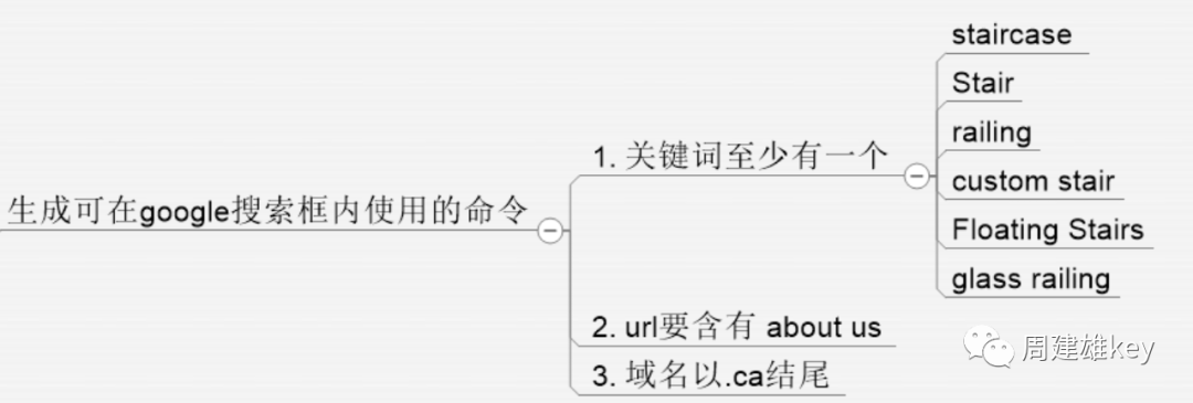我们要找到在卖我们的产品的客户,关键词是第一个条件,还有什么条件可以限定呢?那就是这个公司会在公司介绍里介绍这个产品,再加上第3个条件,限定国家,从而缩小范围。